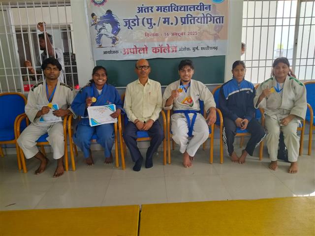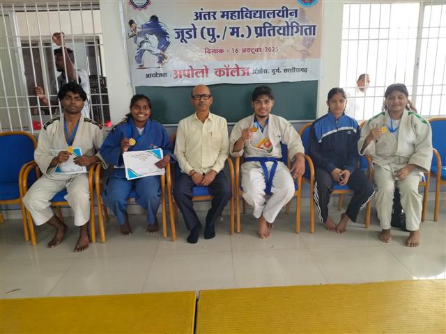 हेमचंद यादव अंतर महाविद्यालय जूडो प्रतियोगिता में संस्था की की छात्रा दिव्या कुमारी ( M.com 3rd semester ) , इशिता साहू ( B.A Final ) , छात्र घनस्याम निर्मलकर( M.A Political 1st Semester ), अभिजीत आचार्य ( BHSC 1st semester ), प्रतियोगिता में प्रथम स्थान प्राप्त किये हैं जिसका फलस्वरूप उनका चयन विश्वविद्यालय के जूडो टीम में हुआ है जो ऑलइंडिया विश्वविद्यालय से भाग लेंगे ....