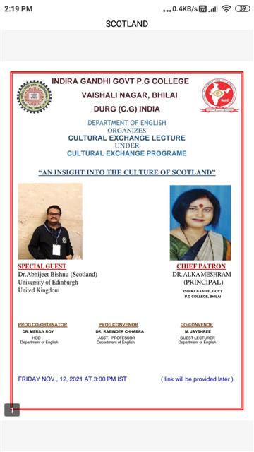 The culture forum of English department..organized an talk with Dr Abhijeet Bishnu from Scotland on 12 November 2021.