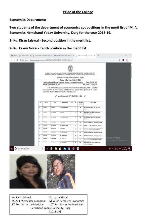 Students of Economics, Participated in a workshop On Entrepreneurship Awareness And Career Devt. Program Organized By Bhilai Institute Of Technology 12-02-2019
